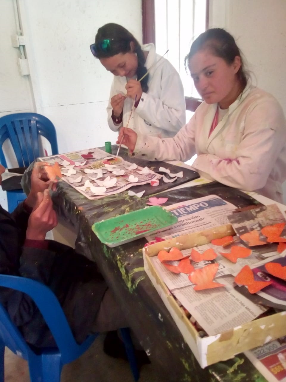 En el Taller de Artesanías se desarrollan habilidades motrices finas utilizando técnicas de pintura, modelado y ensartado, elaborando productos de buena calidad que son comercializados al interior de la institución.